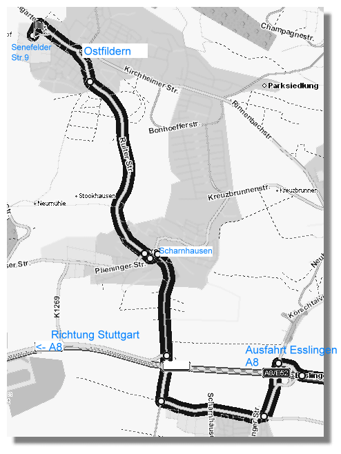 Richtung Ostfildern (Scharnhausen) ca. 4km,