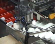 vollautomatisch in die Fallschachtel zugeführt werden.
